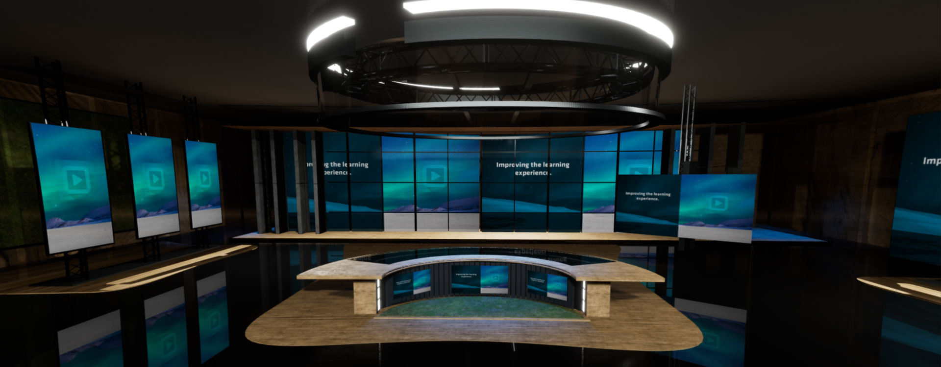 加载场最模板后,用户就可以随意定制它,更改显示器、家具、背最并添加指针等元素,甚至为测试和投票添加交互式模板。