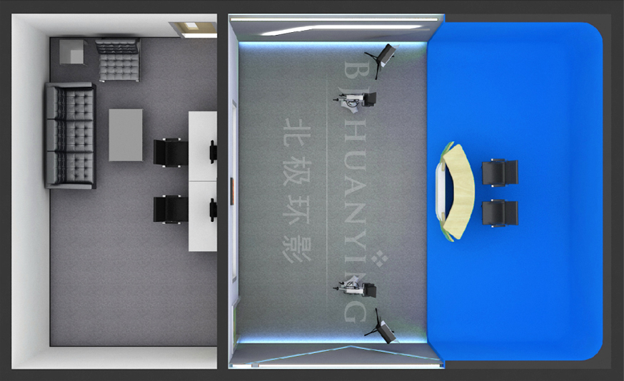 针对不同房间格局进行不同的校园电视台风格设计,所有材料为阻燃、环保材料,隔音、回音处理达到业界高水平
