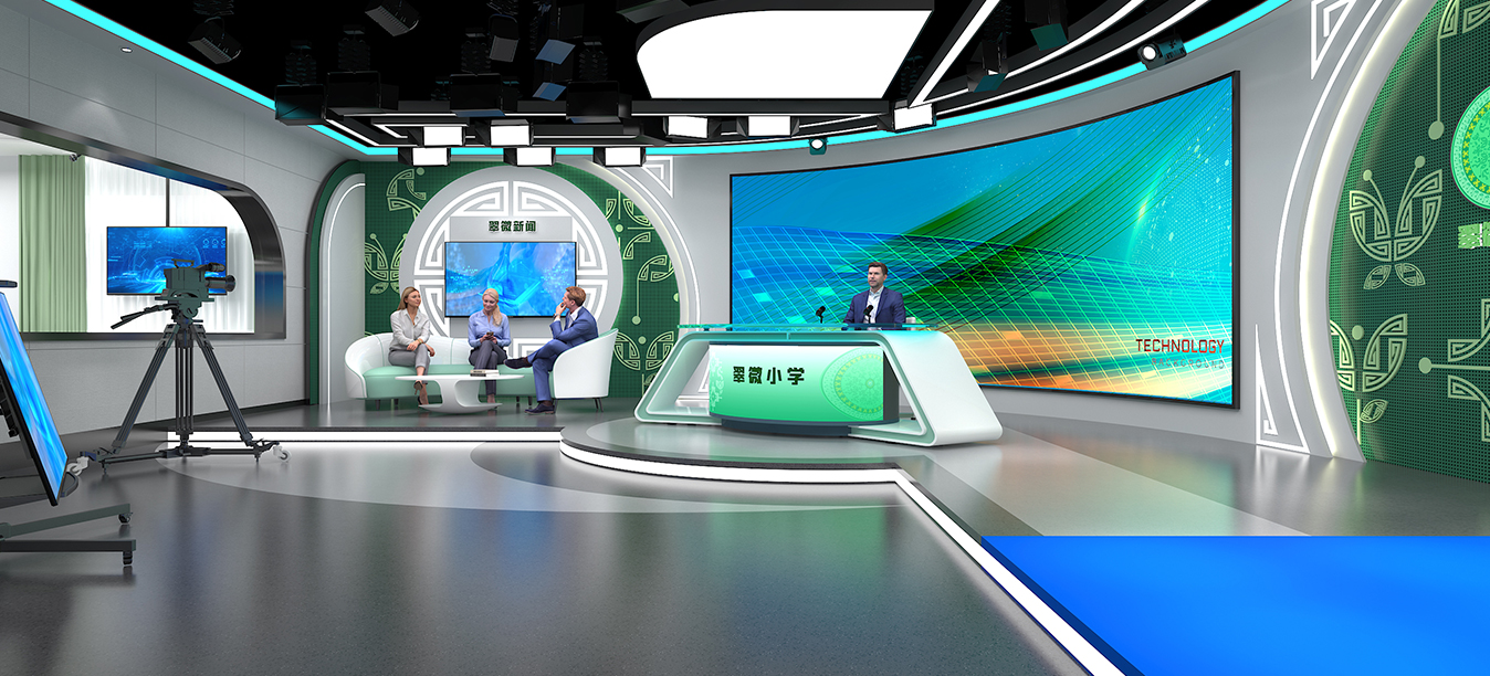 在灯光设计上,灯光分布均匀,并由控制室远程控制,其中虚拟演播室整体照度应达到摄像要求照度值,灯具也都采用了新型绿色节能LED照明灯具,背景、轮廓光强,使画面有纵深感,背景照度均无明显交叉阴影;同时根据演播室的使用功能,确定室内声学设计音质指标,进行隔声、噪声控制等各方面进行科学、完整的声学条件处理,以此来调整混响时间,避免音质缺陷,使演播室获得高性价比的理想音质效果。