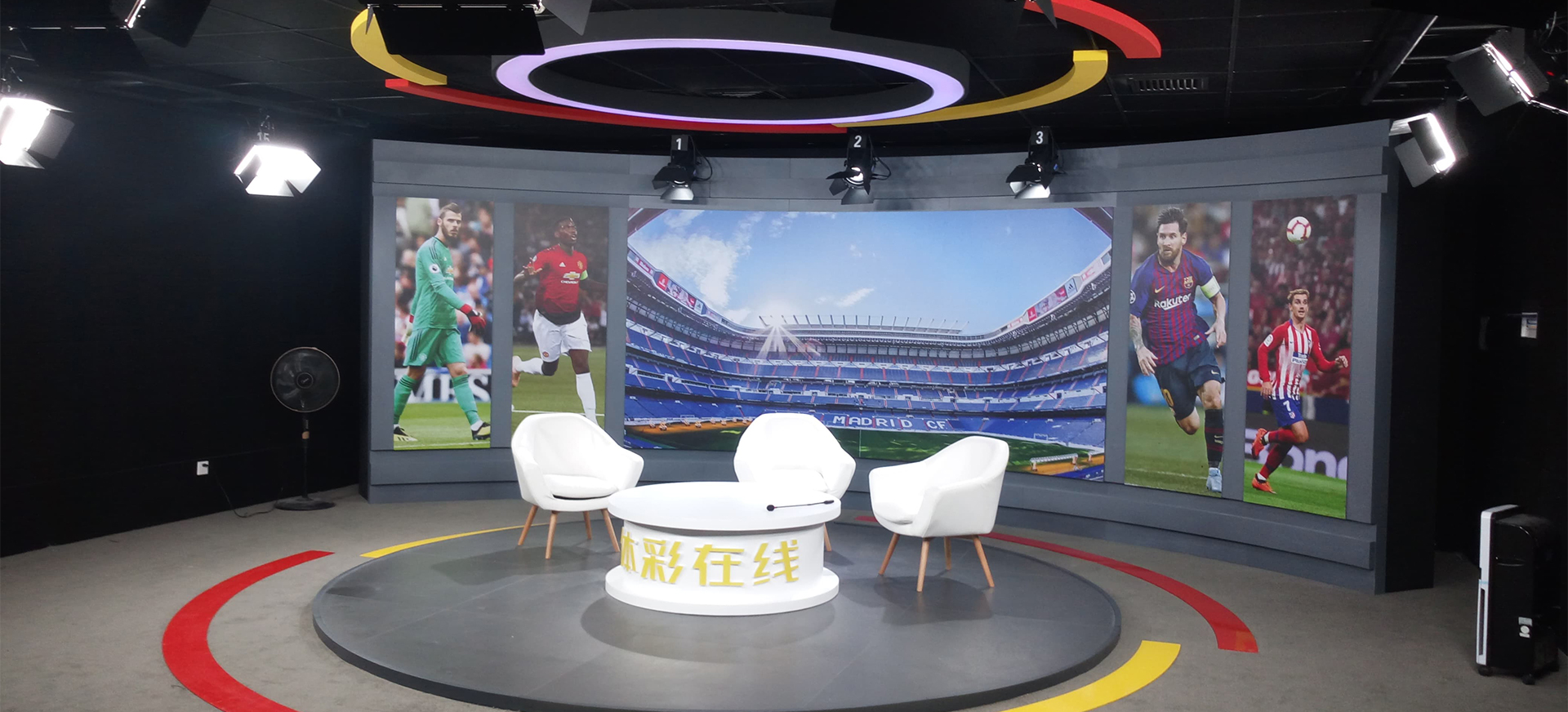 项目特点:北京同道伟业公司打造专业演播室,用于体育评论节目的制作,专业设计,专业设备,为广大球迷送上精彩绝伦的节目制作;